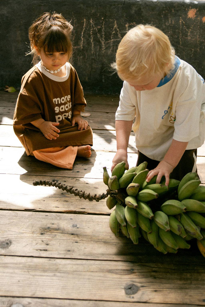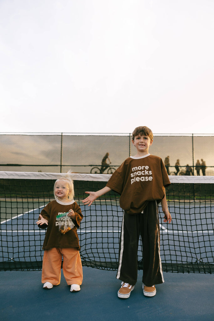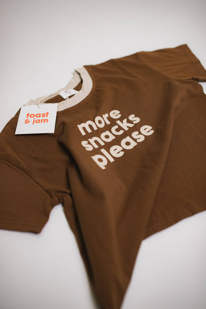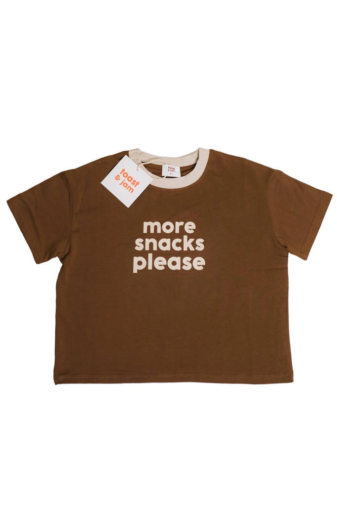 Gentle, comfy, and full of personality—this oversized tee in a cozy toasted cocoa shade delivers retro vibes with a playful twist. Made from 100% cotton, it’s soft, breathable, and perfect for all-day toddler adventures. A cheeky graphic celebrates the snack-loving spirit of little ones, while the contrast ribbed neckline adds a fun, styled finish.